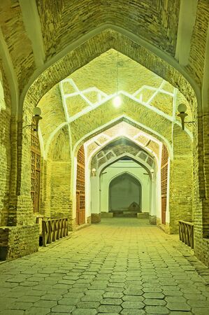 The passage through the Toqi Sarrafon market is empty in the evening, Bukhara, Uzbekistan.