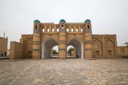 KHIVA, UZBEKISTAN - APRIL 07, 2022: Kosh Darvaza (Double gates) of the Dishan Kala in Khiva, Uzbekistan