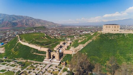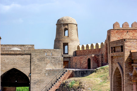 Hisor Fortress Madrasa Kukhna and Nav Picturesque Breathtaking Tower View on a Sunny Blue Sky Day