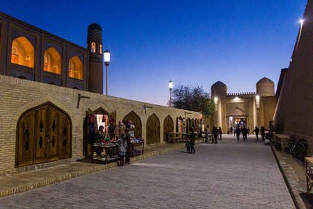 KHIVA, UZBEKISTAN - APRIL 25, 2018: Street market in the old town of Khiva, Uzbekistan.