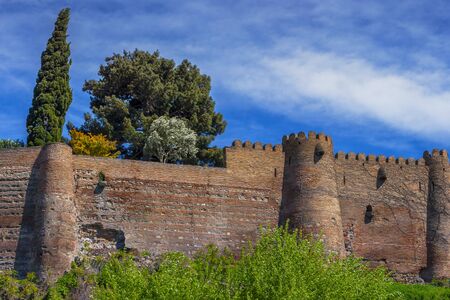 Medieval stone wall near the temple Metekhi. Tbilisi, Georgia