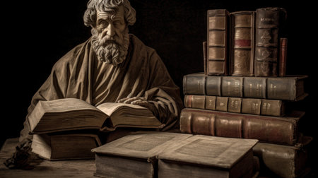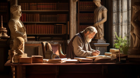 The stoic German philosopher with his book. AI generated illustration