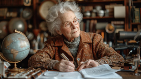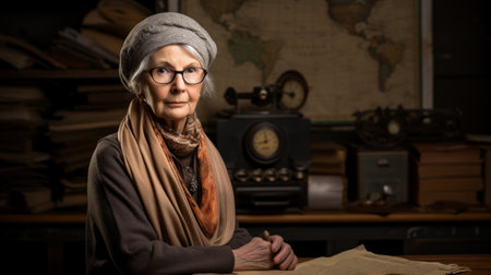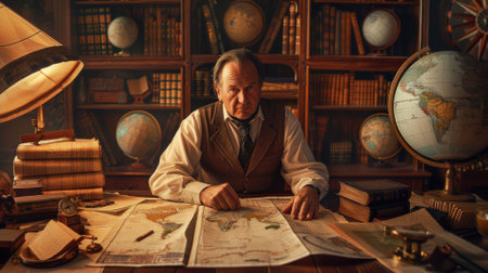 Senior archivist with historical letters and maps