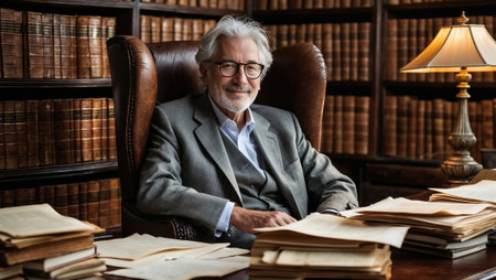 Authoritative male lawyer in a legal office, representing expertise and professionalism in law.