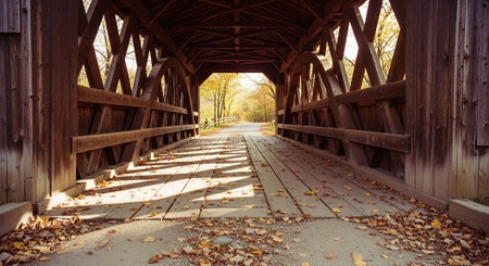 Rustic stone bridge over a sunlit pathway a timeless countryside scene in warm hues