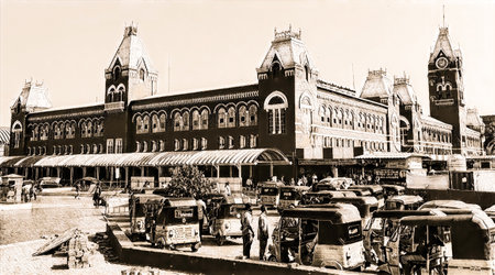 CHENNAI, INDIA - JUN 12, 2021: View of Chennai Central (officially Puratchi Thalaivar Dr. M.G. Ramachandran Central Railway Station), which is the main railway terminus in Chennai.