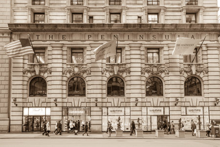 NEW YORK CITY - FEB 13: Shopping street at 5th Avenue in NYC with tourists on February 13, 2015. It is considered among the most expensive and best shopping streets in the world.