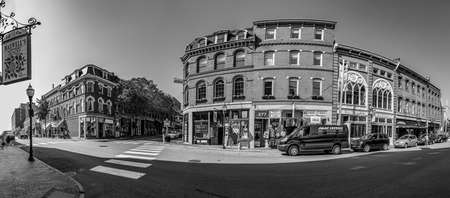 Portsmouth, USA - September 14, 2017: downtown view of historic town of Portsmouth in New England, USA.