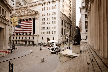 NEW YORK CITY - AUGUST 24: Wall Street on August 24, 2011 in New York, NY. Wall St is the home of New York Stock Exchange, the world's largest stock exchange by market capitalization.