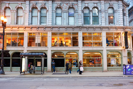 CHICAGO, IL - CIRCA APRIL, 2016: streets of Chicago at evening. Chicago, colloquially known as the Windy City, is the third most populous city in the USA, following New York and Los Angeles