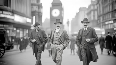 English man pousing on city street, 1890 vintage photo, Generative AI