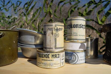 Russia.Saint-Petersburg.01.05.2016.On the table ware and food products to the German and Russian soldiers during the Second world war.
