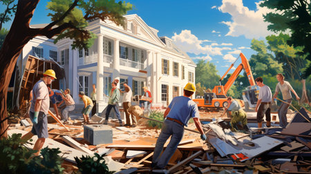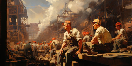 A group of American workers rest after a day of work. High quality illustration. Generative AI