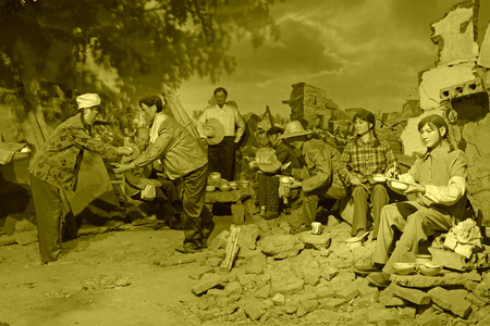 TANGSHAN CITY - NOVEMBER 16: The Character sculpture in the exhibition hall, in the Tangshan earthquake ruins park, on november 16, 2013, tangshan city, hebei province, China.