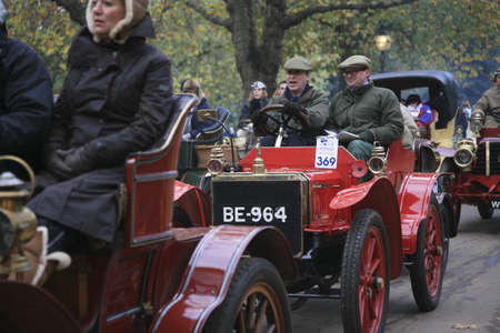 London, UK - November 07, 2010: London to Brighton Veteran Car Run participants leaving Hyde Park, the event starts at 7:00am at the Serpentine Road in Hyde Park.