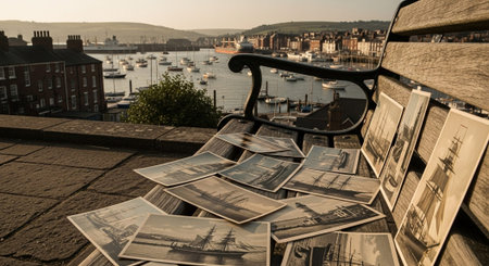 Vintage camera resting on a stack of sun-bleached photos, Ai generated image