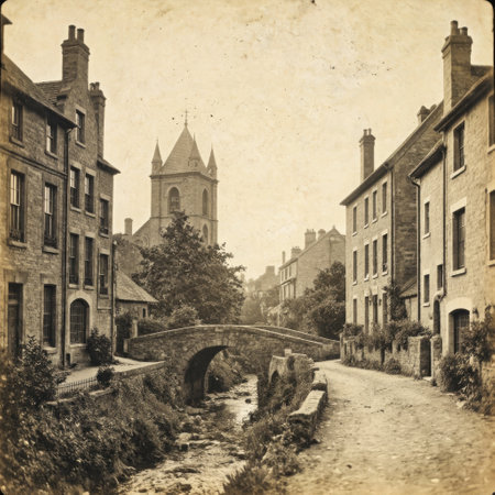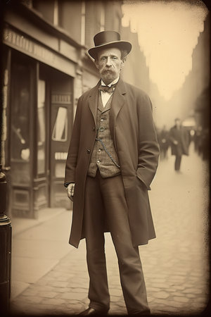 English man pousing on city street, 1890 vintage photo, Generative AI