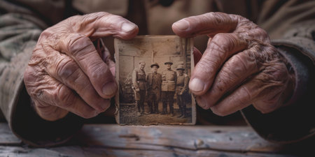 Elderly Hands Holding a Vintage Photograph, Evoking Nostalgia, Heritage, and Family Memories