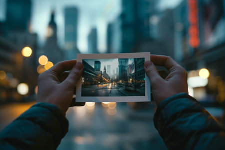 Warm antique photographs are held in hands, showcasing cherished memories and a nostalgic atmosphere that invites reflection.