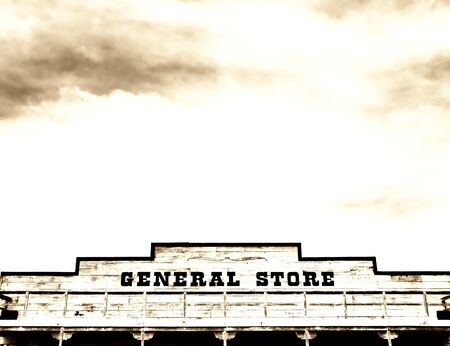 A nostalgic scene of a vintage general store with wooden shelves filled with retro packaging and products, capturing a charming rustic atmosphere.