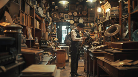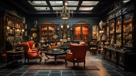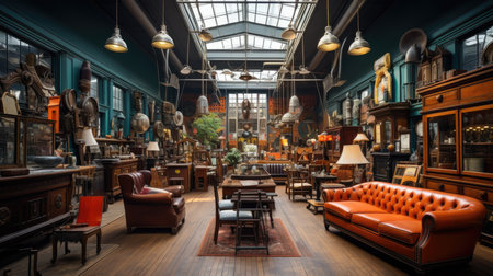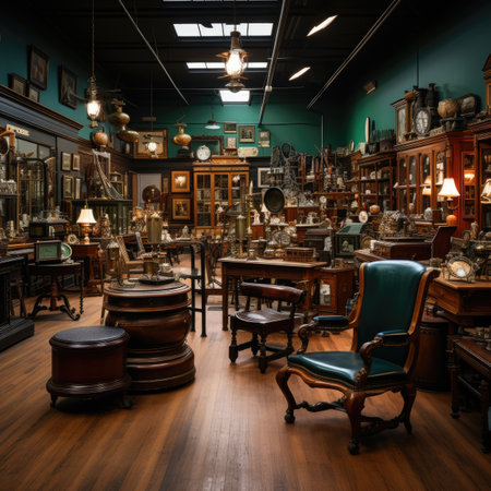 A cozy interior of a vintage store filled with antiques and collectibles. The image captures the nostalgic charm and character of the space, making it suitable for themes related to history, nostalgia, and vintage decor.