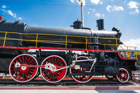 vintage Russian Soviet passenger steam locomotive class IS (Joseph Stalin) model IS20-578 on November 07, 2018 in Kiev, Ukraine. In total 649 IS series were manufactured in 1932-1942 but only one exist now. The 1st IS steam model was released from the Kol