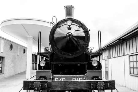 Bangkok, Thailand - March 26, 2016 : Steam train at Foundation Day of train operation 119 years anniversary of the State Railway of Thailand. , process in vintage black and white style