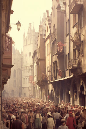 Taggia, Italy - March 17, 2018: Participants of medieval costume party in the historic city of Taggia in Liguria region of Italy. The actors acting out episodes of daily life in settings that evoke moments of life lived fully the seventeenth century. The