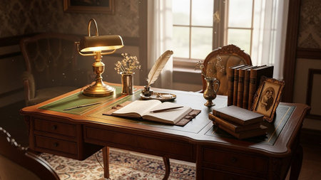 Vampires of the 19th century. Portrait of a pretty innocent young lady in the lair of an attractive and frightening vampire. Halloween.