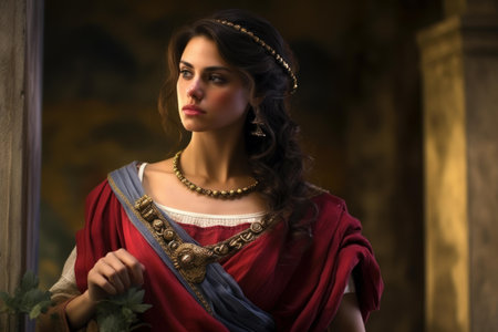 Flowy Roman woman traditional attire. Historical female person ancient costume. Generate Ai