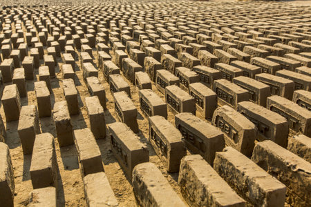 BHAKTAPUR, NEPAL - CIRCA DEC, 2013: On-site local Brick Factory. A survey found 74 kilns in the Bhaktapur district of KTM. In Kathmandu, respiratory problems occur at 12 times the national average.