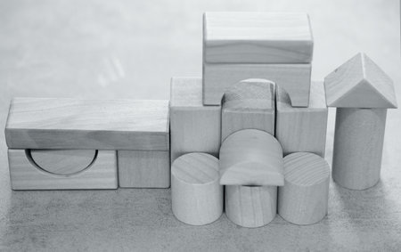 Collection of wooden blocks arranged on table