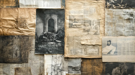 Artistic collage featuring vintage newspaper clippings capturing historical moments and stories