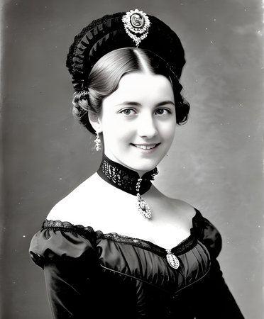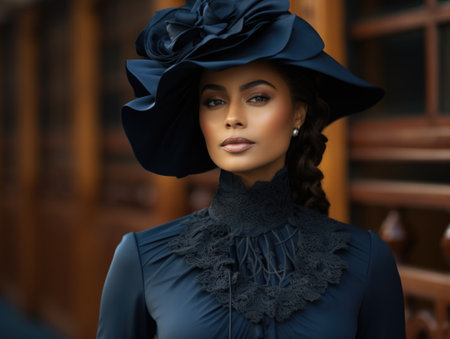 Beautiful young lady portrait in hat. Vintage photo 1890, Generative AI