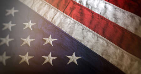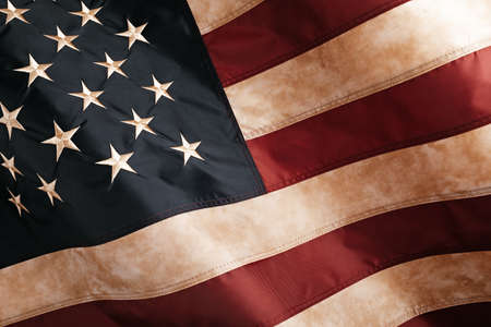 Close up of United of America flag in warm retro style and back light, selective focus, good for USA theme background or 4th of July concept