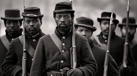 uniforms black civil war soldiers illustration rifles flags, commitment history, legacy courage uniforms black civil war soldiers