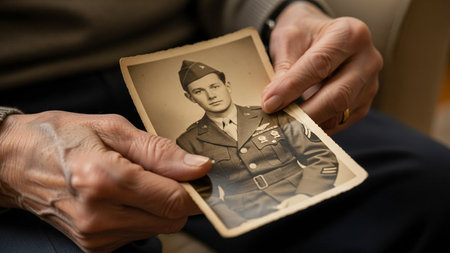 Elderly Hands Holding a Vintage Photograph, Evoking Nostalgia, Heritage, and Family Memories