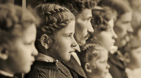 Vintage sepia style photos. Photo from family album. Archive snapshot. Old portrait capturing people from the past