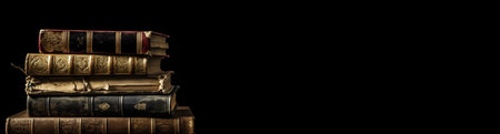 Stack of Antique Books on Black Background Banner