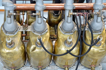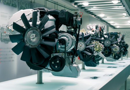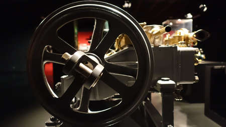 Turin, Italy - June 20, 2021: Ancient restored mechanical parts used for cars, at the automobile museum.