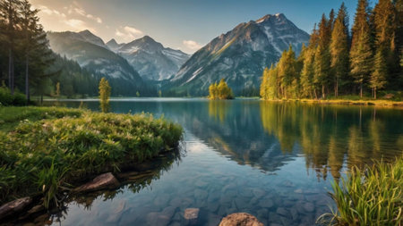 Beautiful alpine lake Strbske pleso in High Tatras, Slovakia