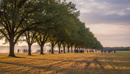 Soft hues of pink and orange illuminate the sky as trees stand tall in a tranquil forest during sunset.