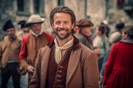 SANTA MARIA DA FEIRA, PORTUGAL - AUG 3, 2023: During annual Viagem Medieval festival. The 26th edition of the event takes place in historic city center, with a recreation of the reign of King Joao I.