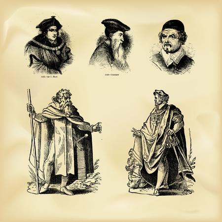 Burgos, Spain - Jun 17, 2023: Gigantes and cabezudos at Fiesta del Curpillos in Burgos, Castile and Leon, Spain. Giants and Big Heads parade is typical in festive days in Spain