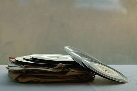 Pile of old vinyl records on the table