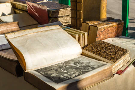 CESENA (FC) - FEBRUARY 16, 2020: lights are enlightening ancient and old books for sale at antiques fair