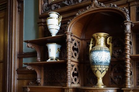 SINAIA, ROMANIA - AUGUST 20, 2014: The interior of Neo-Renaissance Peles palace castle in Carpathian mountains, built between 1873 and 1914 for King Carol I. Interior details
