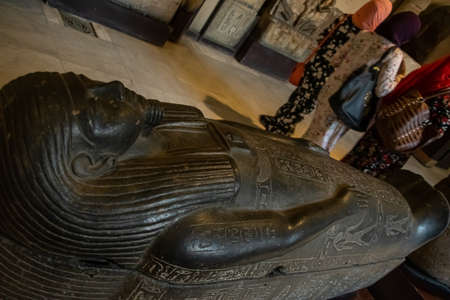Cairo, Egypt - November 02, 2021: Close up view to the Ancient Stone Statues in the Cairo Egyptian Museum, the oldest archaeological museum in the Middle