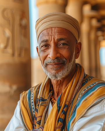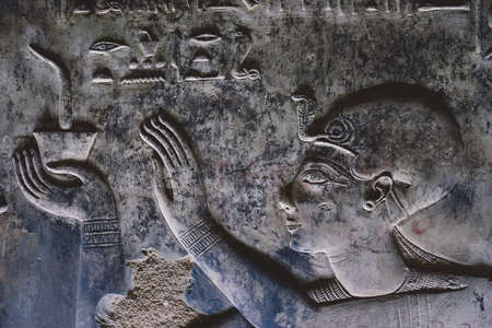 Portrait of the great Egyptian pharaoh in the temple of Thebes, Egypt