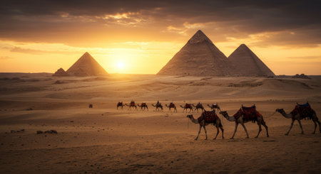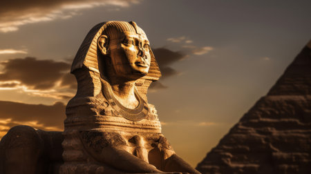 Golden Pharaoh and the Great Pyramid of Giza, Egypt at Sunset, Ancient Wonders, Desert Landscape